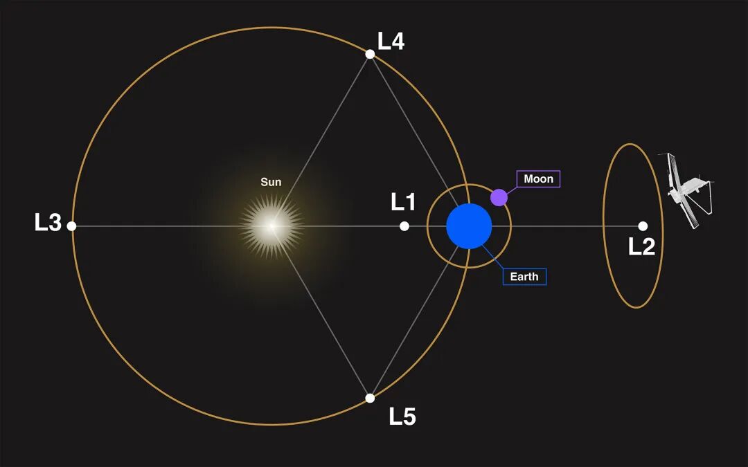 韦伯太空望远镜在日地间第二拉格朗日点轨道上运行 ©NASA, STScI