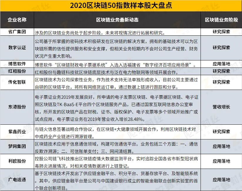 2020区块链50指数样本股大盘点:有人蹒跚学步,有人激流勇进