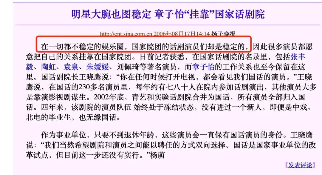 易烊千玺的演技颇受市场认可,胡先煦作为童星出道,有表演经验,又受过科班训练,而罗一舟学舞蹈出身,由《青春有你3》(因倒奶事件反向出圈的那一季)选秀节目出道,竟同样以演员身份进入国家话剧院。枪打出头鸟。易烊千玺名声最盛,又有违规入学的争议,被当成了众矢之的。据国家话剧院此前发布的招聘要求,应聘人员除去是应届生外,还要满足在校期间为“非在职人员”这一条件。易烊千玺名下有过两家公司,北京九木德文化传媒以及徐州九木德文化发展有限公司,直到公示名单出来前才注销。胡先煦曾签约光线传媒,今年1月解约;罗一舟有4家任职企业,担任其中一家公司的法人代表,他们三人,似乎都不符合要求。与传统考编不同,剧院和文工团的演员岗不用笔试,只用参与三轮面试。有考编者鸣不平,称自己“每天学到头秃,做梦都是背题考试,有人却从一开始就有量身定制的优待。”退一万步说,即使按照演员岗不笔试只面试的标准,其他参与面试的考生称,自己没有在考场上见过这几位明星。根据行程,三面那天,胡先煦在安徽拍戏,更不可能抽出分身到北京面试。所谓的录取流程,像是“一个萝卜一个坑”。国家话剧院在今年应届生演员1岗上只招了4个人,其中3个都是明星,还是中戏校友兼室友,在千里挑一的岗位上,考三选三,显然不是巧合。所有质疑的核心都围绕着:这样一场面向全国应届生的大型事业单位招聘,究竟存不存在明星特权与不当竞争。针对网友们汹涌而来的质疑,部分得到了解释。比如公司法人可以报考编制,但考上后必须辞去法人代表,因此出现了“易烊千玺连夜注销公司”这一幕;胡先煦与光线签约,是经纪合同不是劳务合同,也算符合“非在职人员”要求。至于他们有没有按流程参加三轮面试,是否占据了编制名额,仍没有得到答复,三位演员也没有做出回应。国家话剧院曾回答记者,“名单人员处于公示阶段,不代表最终结果。”但明眼人都知道,除非遇到极特殊情形,一般状况下,公示名单代表的就是最终结果。编制名额在当代的重要性不言而喻,大家如此愤怒的原因不是明星“上岸”,而是特权与不正当竞争的存在。换句话说,明星当然可以上岸,但也应该像普通人那样,经过严格且正规的筛选流程,才能获得编制名额。明星扎堆进入体制内,看起来挺新鲜,实际上,并非这两年的新现象。从德艺双馨的老戏骨,到公众眼熟的中生代演员,不少大众认识的熟面孔,都早早进入了体制内。著名演员濮存昕,七十年代末加入空政话剧团,后来调入北京人民艺术剧院(简称人艺);演员冯远征,八十年代进北京人艺,现在是人艺副院长;宋丹丹也是他们的同事,出演过不少话剧,如今已经退休。老一辈进入体制内的演员们,不乏拿得出手的影视作品与话剧作品,也在年复一年的演出中,积累了口碑与人脉。中年演员里,常被调侃的“老干部”靳东,另一重身份是煤矿文工团副团长,是副厅级真干部;而我们熟悉的章子怡、李冰冰、宁静、袁泉等人,也在多年前进入体制。他们属于资深演员,出演话剧不算多,却常年活跃于影视领域。以90和00为主的年轻演员中,刘昊然率先进入煤矿文工团,成了“体制内男友”代表人物,关晓彤、张艺兴进入国家话剧院。关晓彤让人印象最深的影视作品还是豆瓣3.8分的《凤囚凰》,张艺兴则是偶像歌手出身,出演过几部影视剧,多次因演技被批评上热搜。这样的他们,却是作为“高端人才”,被引进了国家话剧院。即使不论演技,国话还有个规定:在编演员每年至少要出演1部话剧。这些年轻明星又有几人甘愿拿出档期,选择演费心费力却回报率低的话剧呢。当然,十多年前就出现过“明星进入剧院却不实际参演”的现象,被称为“明星挂靠”,代表人物章子怡,2000年进入国家话剧院,没有出演过一部话剧作品,却依然在编。在一篇名为《明星大腕也图稳定 章子怡“挂靠”国家话剧院》的旧报道中,记者写道,“在一切都不稳定的娱乐圈,国家院团的话剧演员们却是稳定的。”这篇文章同时点明,国话230多名演员中,每年只有七八十人实际参演话剧。明星为何能够通过“挂靠”单位,一边拿着娱乐圈的金饭碗,一边捧着体制内的铁饭碗?前副院长王晓鹰在接受《中国文化报》的采访中解释,明星进入体制并非“挂靠”,而是“在编”,当他们外出拍摄影视剧时,制作单位需要跟剧院签订劳务合同,最低的合同费用是演员工资的400%。根据咖位的不同,明星缴纳的费用会有所调整,最终用于剧院建设和剧本创作。对于剧院而言,如果年轻明星愿意出演话剧,可以带动票务销量,曾有位时代少年团的成员参与国话话剧《铁流东进》,题材本身很少有年轻人感兴趣,但因为他的参演,开票后瞬间售罄。即使明星不愿参演话剧,他们交的高额罚款,也可以用来建设与经营剧院,怎么都不亏。站在明星的角度,从娱乐圈到体制内,既有高收入,又有稳定感,何乐而不为。演员宁静归属于上海电影制片厂,曾在访谈节目《星月对话》里强调编制对自己的重要性。她称“我一直很珍惜我的工作”,虽然每月只有3500,但自己是个“有单位的人”,不愿意把这份铁饭碗丢掉。宁静早年进入体制内,更多是为了那份安全感。而近两年,娱乐圈也发生了微妙变化,从前明星们热衷的大制作商业片不再吃香,《大江大河》《觉醒年代》《山海情》这种高分主旋律正剧,成了他们的心头好。演一部