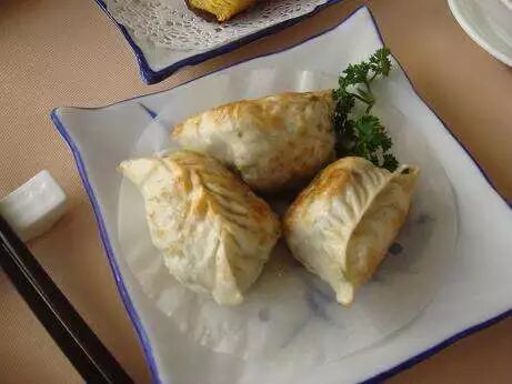 煎饺是中国北方地区特色传统小吃之一,是以面粉和肉馅为主要食材制作成水饺,放凉后用油煎制而成。煎饺表面酥黄,口感香脆。