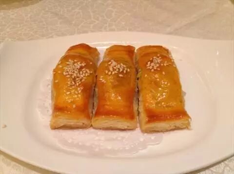 叉烧酥也是传统名点,由于是烤的,所以它比其他点心较为干身,切开后露出叉烧馅料,渗发出阵阵叉烧的香味。叉烧酥的温度是优劣的关键,拿出后放在烤架拿出后放在烤架上冷却,这个时候的叉烧酥都是很酥很酥的。
