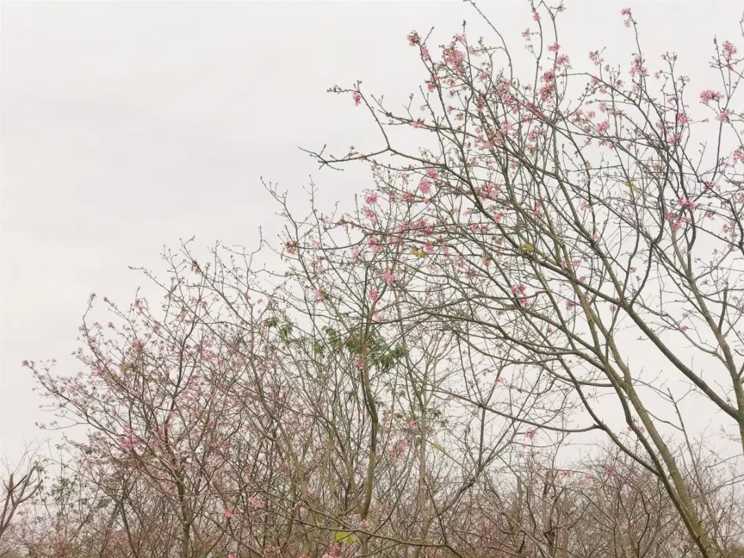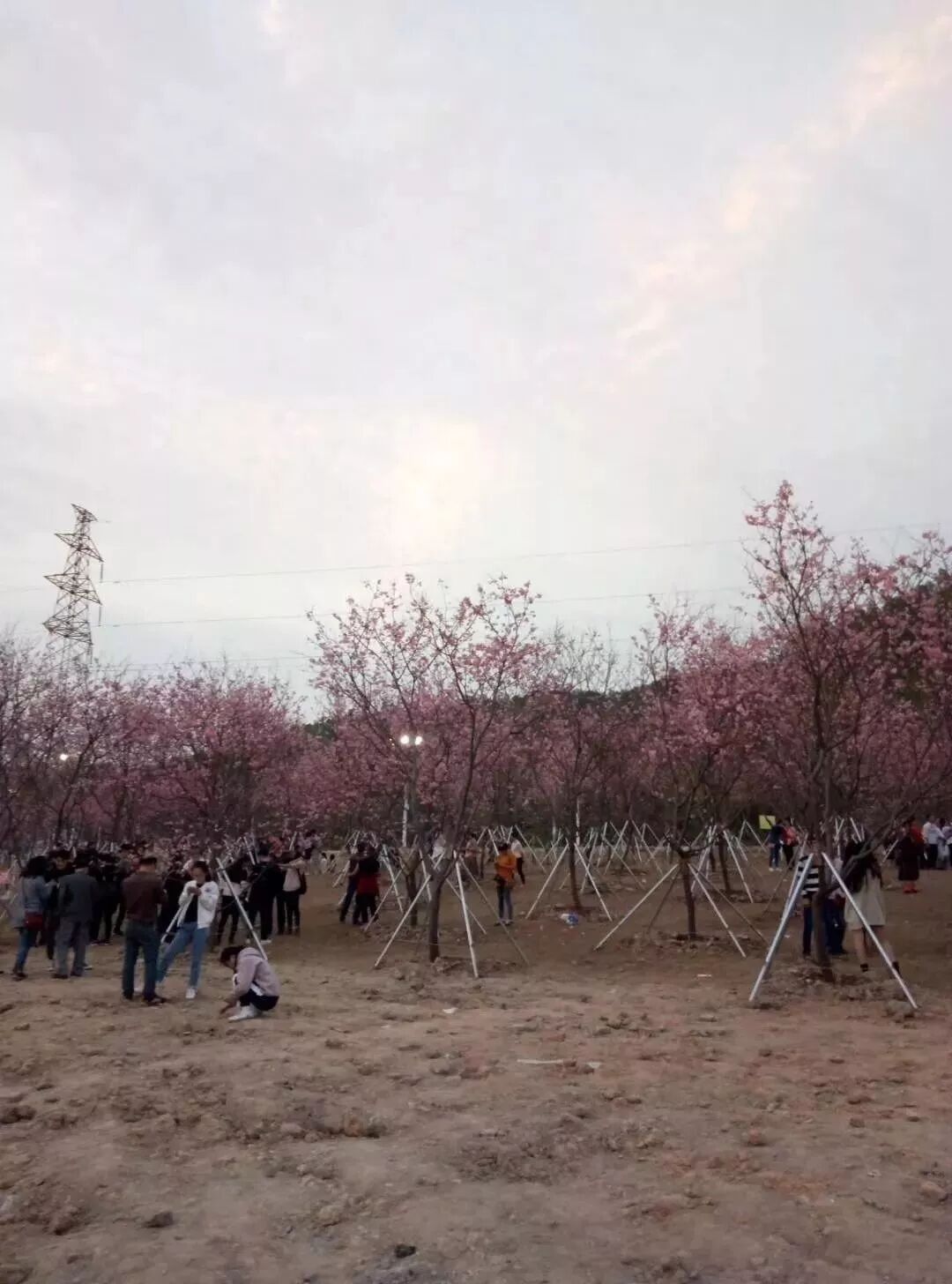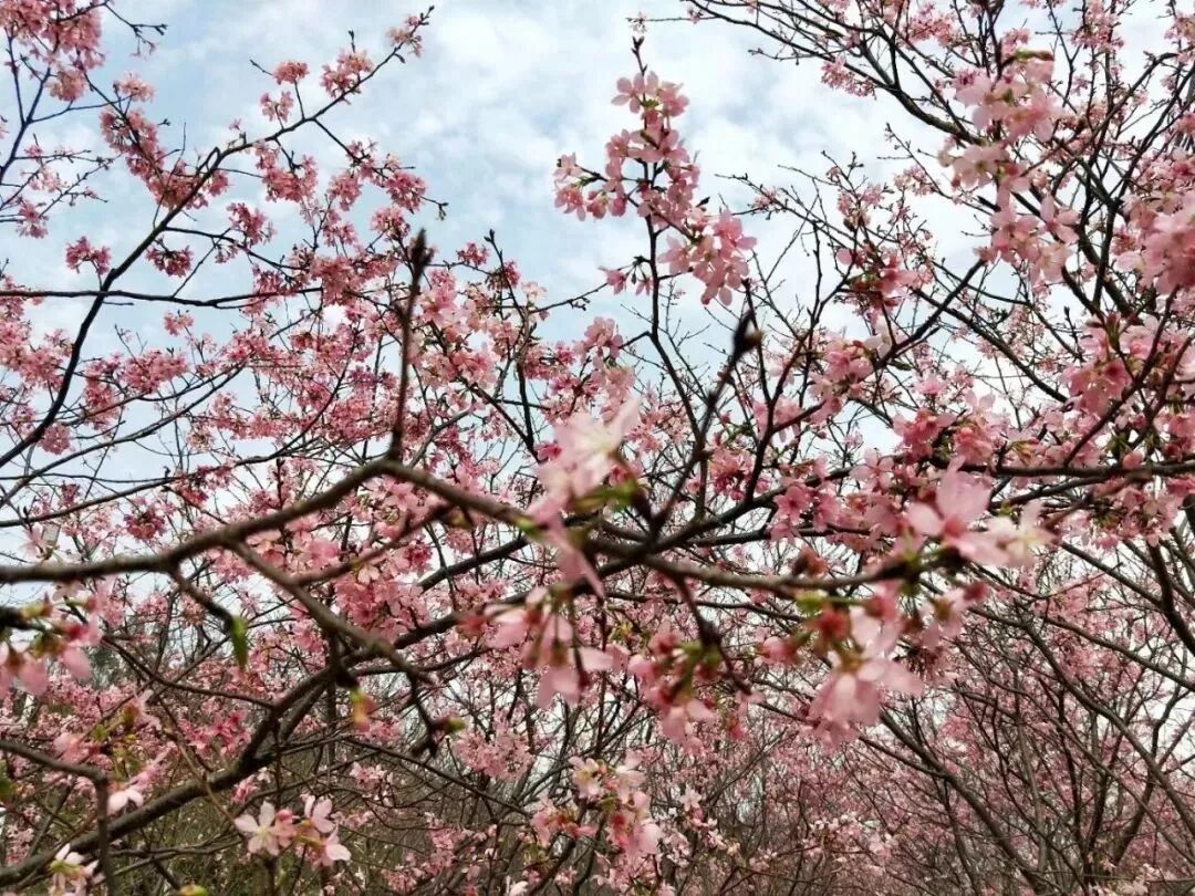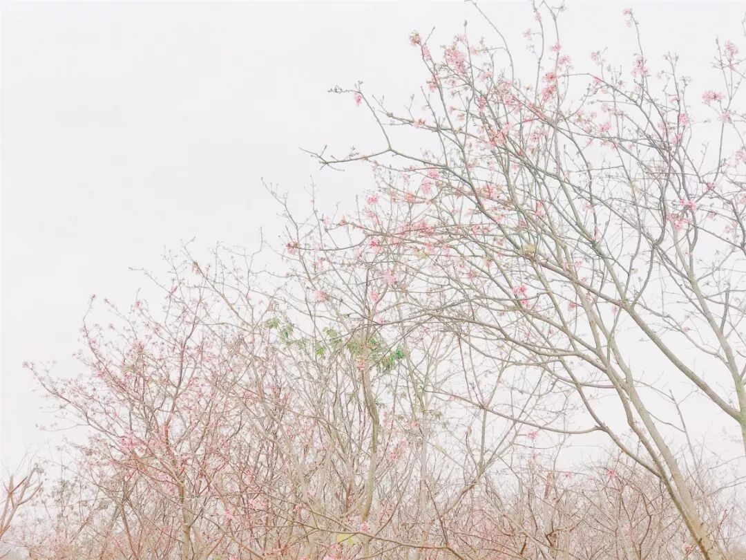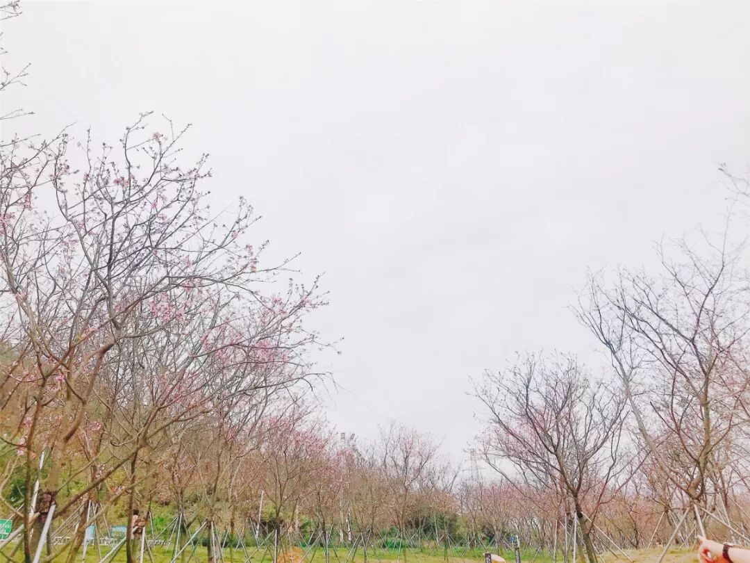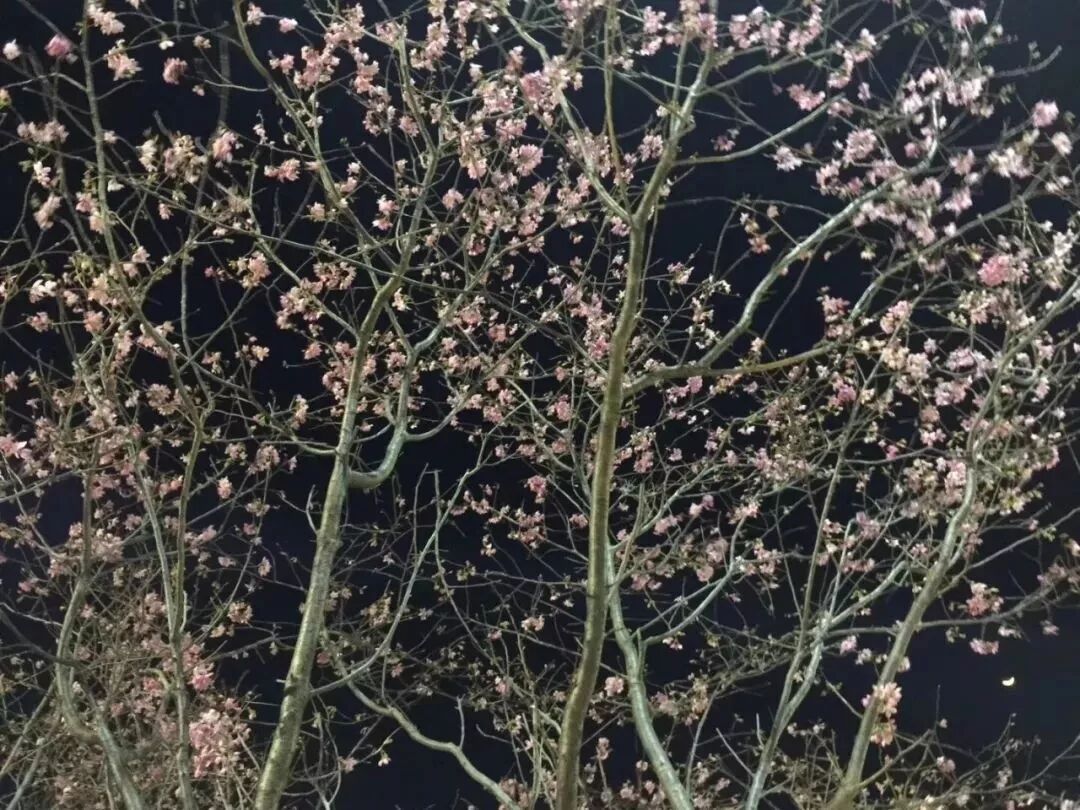 成片粉嫩的樱花花瓣在园中纷扬飞舞