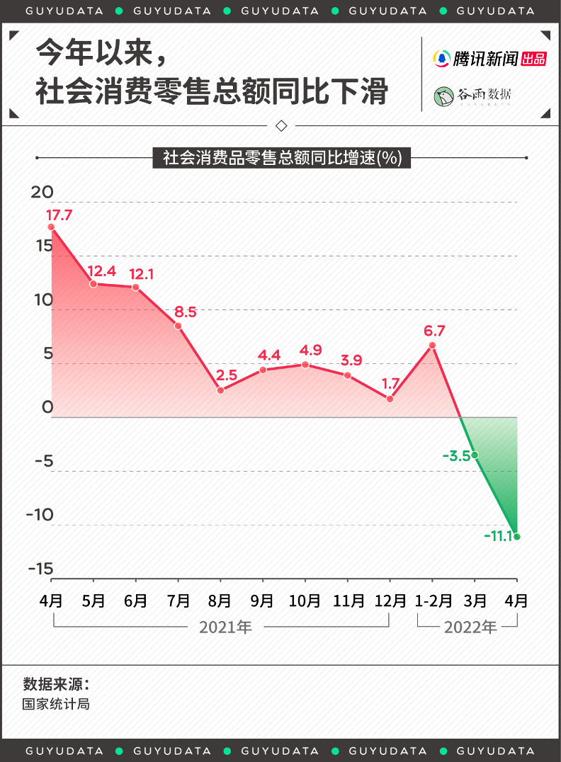 国家统计局数据,2022年4月份,社会消费品零售总额为29483亿元,同比下降11.1%。消费依然是经济恢复的薄弱环节,而这分为两种情况:第一种,没有消费机会;第二种,放弃消费机会。