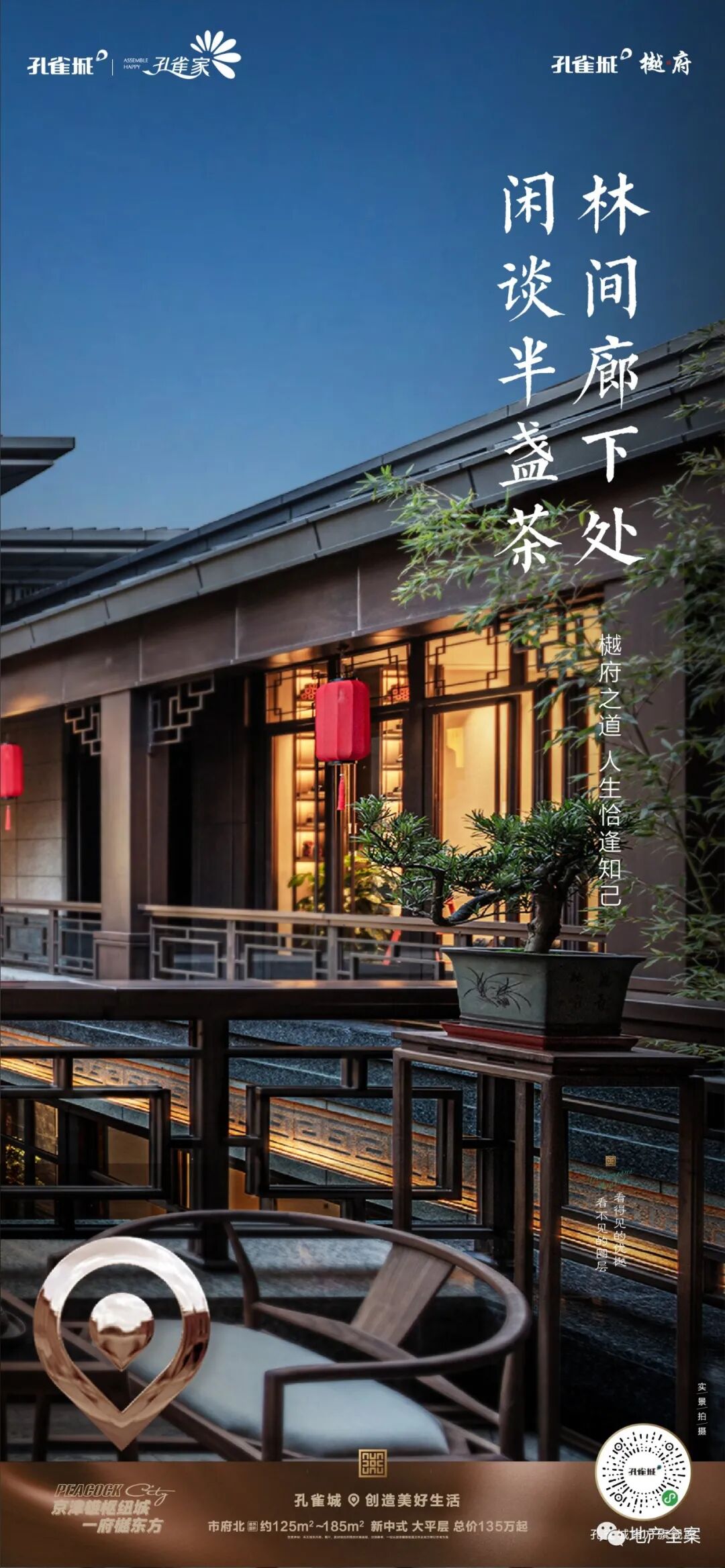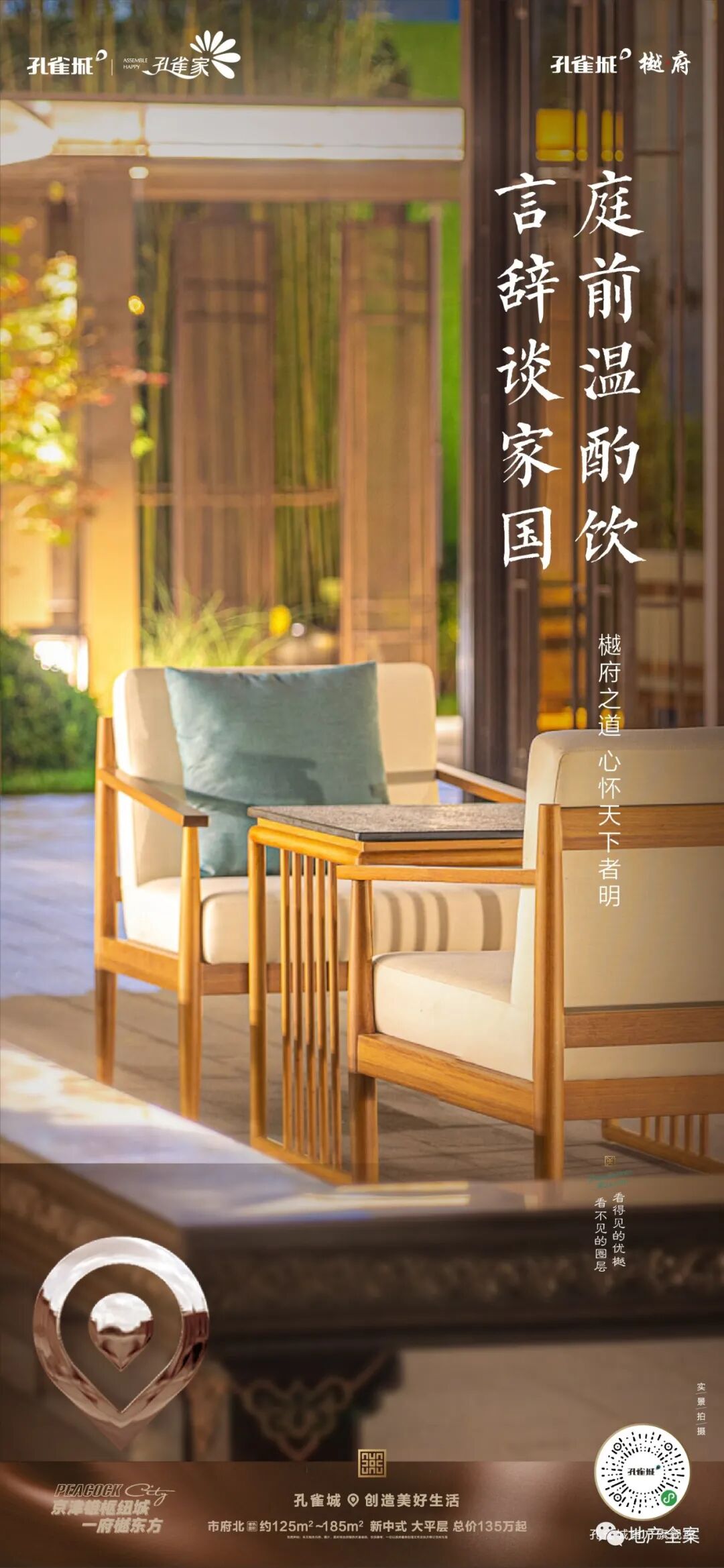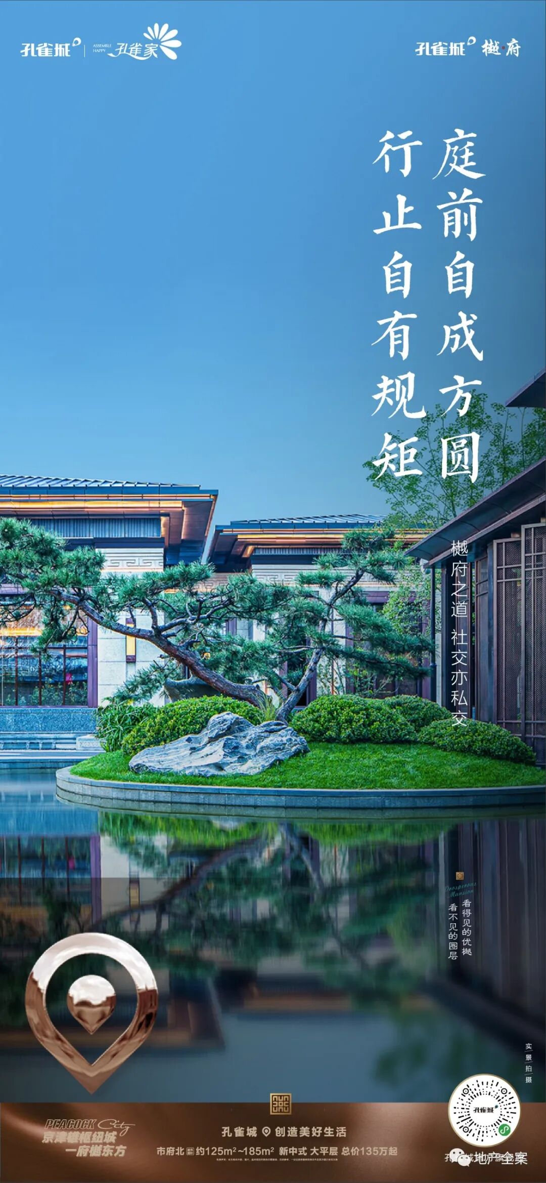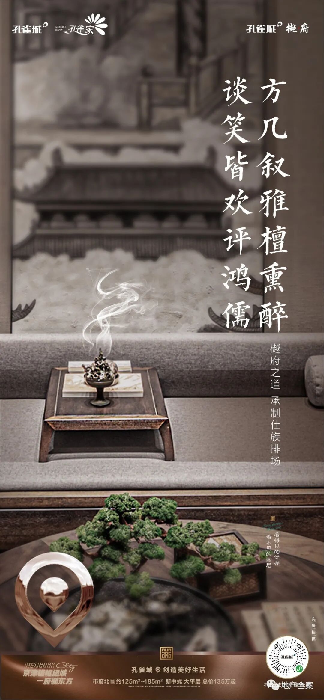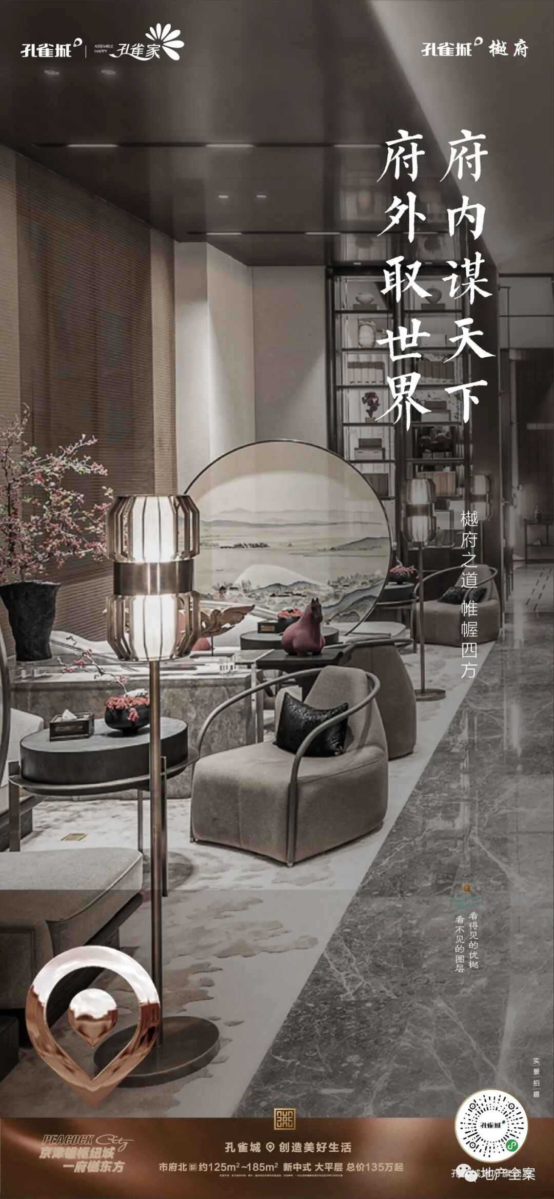 孔雀城樾府,是孔雀城全新的一条产品线,不同于以往的快销快走的刚需盘,它以新中式产品精耕细作,成就了孔雀城樾府系的开山之作。八载霸州深耕,孔雀城于霸州繁华城芯之处,再成当代鸿鹄风雅之谈!