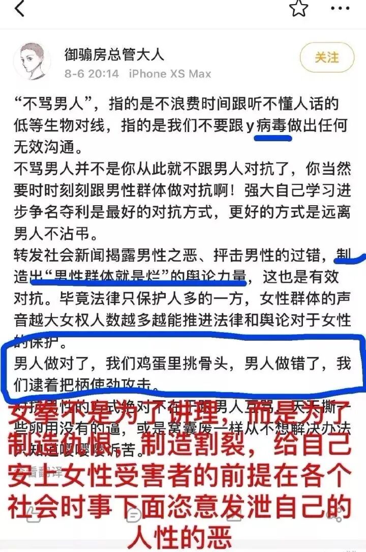 可女权不在乎这些,她们已经习惯了,任何一个男性有问题就往性别归因,攻击全体男性,正如这位兄弟所说。