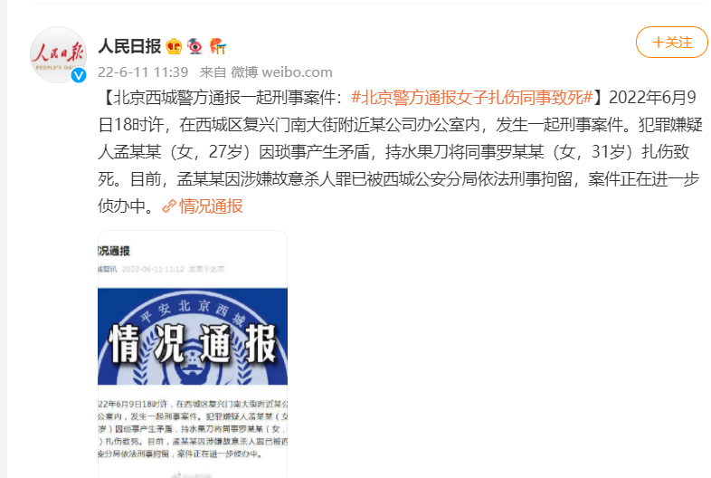 这事同样发生在今天,同样也没上热搜,只因刀人的也是性别女吧。确实,这种情况下女权也不好下手,没什么可炒的啊。不过下面这件事,问题就有点大了,性质更恶劣。