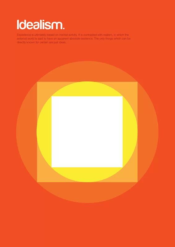 伦敦的视觉设计师Genis Carrera创作了下面的一系列作品:哲学图表(Philographics)。Carreras使用最基本的配色,最基本的几何图形设计,加上简洁的说明,成功地在这些符号化的图像里塞入了大量信息。
