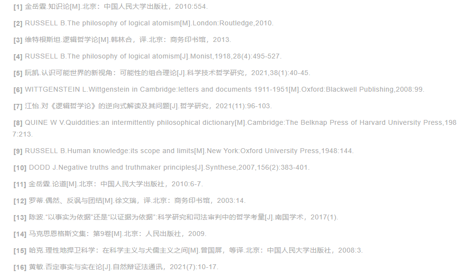 3.主体的认知能力和认知过程将成为真理论和知识论的核心对象。逻辑原子主义者对于否定事实的处理,意味着真理论首先是形而上学问题,为了在本体论层面解释否定命题为何为真,罗素认为实在中存在否定事实,维氏主张通过同一个逻辑空间中的肯定事实推论出否定事实的真假。时至今日,有不少当代学者仍然会认为真理问题首先是一个脱离人的形而上学问题,但对否定事实的分析表明,从形而上学的角度去解释否定命题如何为真将陷入层出不穷的困境之中。黄敏尝试从视角主义的实在论解决否定事实问题,反对“实在独立于认知者”,而罗素的“实在论假定了一个位于世界之外的视角,一个上帝视角”
