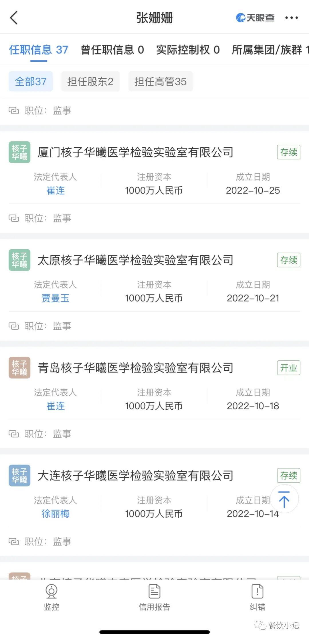 我宁愿不相信这事是真的,但现实总是那么让人感到无力!一个名叫张姗姗的人,其背后注册了35家核酸检测公司,基本上遍布全国各地!而且她的公司开在哪里,哪里就会全员检测!而昨夜发生在兰州核酸造假公司就属于兰州核子华曦医学检验实验室有限公司,这家公司成立于2022年8月8日,其中的监事就是张姗姗。问题的关键是,这家公司竟然是空壳公司!