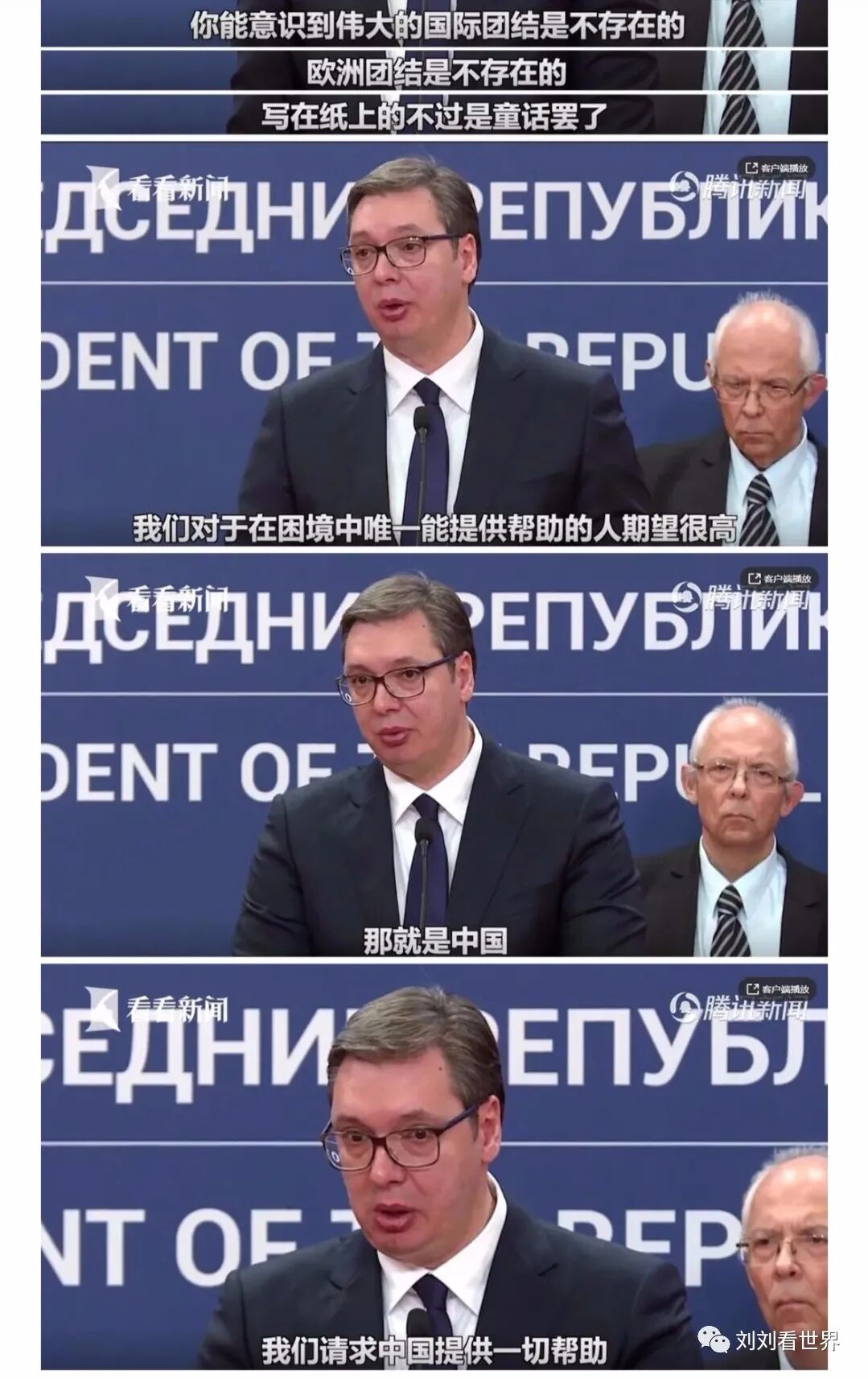还是塞尔维亚总统武契奇看得清楚啊,他说:伟大的国际团结是不存在的,写在纸上的不过是童话罢了,我们对于在困境中唯一能提供帮助的人期望很高,那就是中国。