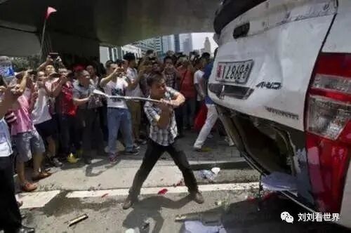 但诡异的事,被砸的车有丰田,有日产,但是英菲尼迪、雷克萨斯这样的稍微高端点的日本车却安然无恙,当民众被狂欢所裹挟,真正的肇事者却巧妙的避过了高端日系车。