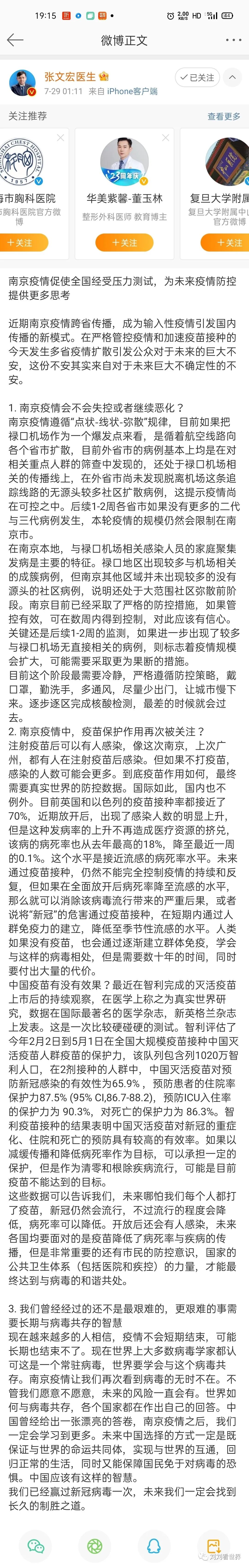 当然,有批判与攻击张文宏的,就有维护和支持张文宏的。