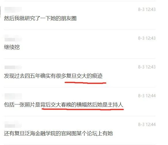 官宣后,8月22日晚间秦泽文在朋友圈表示“已经不能再低调了”,要去任性追逐儿时的梦想。8月23日上午,秦泽文注册微博,再次称参选世界小姐是“为了圆儿时的一个梦”,并希望“会把金融行业女性的声音带去世界舞台”。不知道是不是想到了什么,她随后把“会把金融行业女性的声音带去世界舞台”这条微博删除。根据中国证券业协会官网信息来看,秦泽文满打满算注册了4个月,并未取得分析师资质。能代表中国参选世界小姐是她的“本事”,但这么短的从业经历想代表金融行业女性发声,则多少牵强了些。还有网友质疑,根据秦泽文发言,如果参加世界小姐是“最初的梦想”,这么多年逐梦金融圈又是为了什么?于是网上又传,为了进入金融圈,秦泽文以“年”为单位努力“打造人设”,为此网友还列出了诸多证据。一张疑似秦泽文的简历显示,她本科毕业于上海交通大学,2018年9月进入复旦大学读国际金融硕士研究生。按照道理,优秀如秦泽文,4年应该顺利拿到硕士学位。为什么中国组委会反而删除了她“硕士学历”的简介?一位网友群聊显示,秦泽文的复旦学历可能是伪造的,因为她所标注的班级同学并不认识“这号人”。复旦大学的硕士研究生存疑,连本科上海交大也不那么确定。早在2020年8月3日,微信群中就有人讨论过秦泽文的学历问题。并且通过对她朋友圈的深入研究,发现其“朋友圈造假了四五年”。她朋友圈经常会露出“交通大学”几个字,与其上海交大毕业的说法相似度极高。但网友表示这是秦泽文玩了一招移花接木加瞒天过海之计,她真正的本科院校是位于江西的华东交通大学。![]()