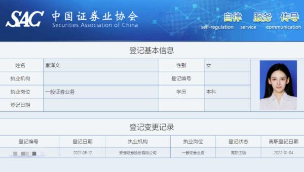 “世界小姐(Miss World)”是世界三大顶级选美比赛IP之一,创办于1951年,同时也是对中国人最友好的选美大赛。2007年,张梓琳夺得第57届世界小姐选美大赛全球总决赛的冠军,2012年于文霞帮国人二次问鼎这项赛事。根据中国区组委会介绍,秦泽文出生于1997年7月,身高173厘米,硕士学历,擅长京剧、舞蹈、钢琴等。工作学习履历上,秦泽文从计算机工程专业跨行攻读金融专业的硕士学位。曾先后在甲骨文、普华永道等知名企业实习,并在安信证券担任分析师,团队最近几年经常在新财富最佳分析师计算机行业斩获第一名。种种迹象表明,秦泽文曾在安信证券胡又文团队中担任研究助理。2020年还作为团队代表出席“新财富分析师颁奖典礼”,与时任计算机首席的胡又文、原军工首席冯福章、原策略首席陈果等知名分析师同框。此外,安信证券调研汉王科技、奇安信、中科创达、锐明技术、绿盟科技、启明星辰等多家上市公司的名单中均有秦泽文的名字。2021年4月27日,秦泽文还以安信证券计算机行业分析师身份参与安信证券主办的“智能汽车高峰论坛”,并在论坛现场发言。中国证券业协会也能查到秦泽文的名字,她在2021年8月进行登记,职业岗位为一般证券业务资格,并未取得分析师资质。网站显示,她已于2022年1月离职。秦泽文金融行业的履历一点问题没有。不过有网友质疑,为什么秦泽文登记信息学历为本科,世界小姐中国区组委会的介绍却显示为硕士学历。8月23日晚11点24分,“第71届世界小姐中国区大赛”重新编辑了微博,将“硕士学历”去掉,新增了体重等信息。然而围绕在秦泽文身边的疑问仍未散去,网友随后又扒出,秦泽文并非世界小姐中国区总冠军,也并非代表中国参赛的最初人选。第71届世界小姐中国区总决赛一共18名选手获奖,分别是东南西北中5个赛区的冠亚季军共15人,以及中国区前三名,分别为冠军阮玥、亚军唐苏苏、季军胡可瑜。但从官方公布名单来看,18人获奖名单中并没有秦泽文的名字。![]()