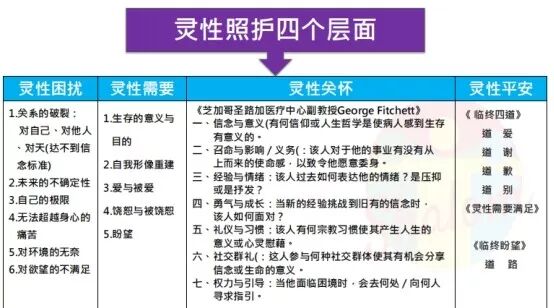 基于对灵性的理解,老师非常详尽地跟我们分享了灵性困扰、灵性需要、灵性关怀与灵性平安这四个部分: