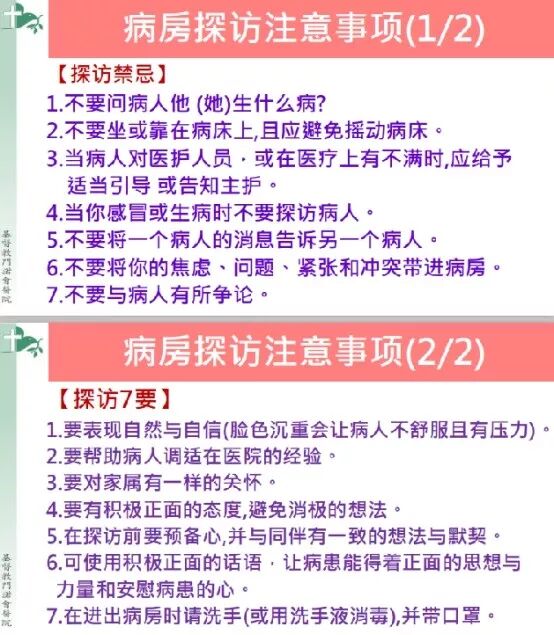 在“病房探访训练”的部分,老师先分享了注意事项: