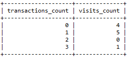 2 cast(cnt as unsigned) transactions_count , count(user_id) visits_count
