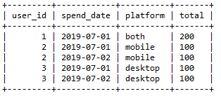 2FROM spending, ( SELECT 'desktop' AS platform UNION SELECT 'mobile' UNION SELECT 'both' ) tt