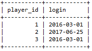 1SELECT player_id, min( event_date ) AS login