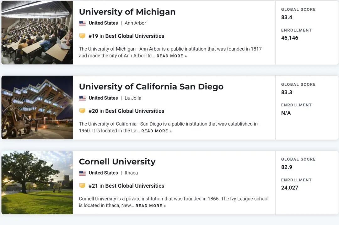 除此之外,U.S.News在上个月还公布了《2023最佳美国大学排名》;