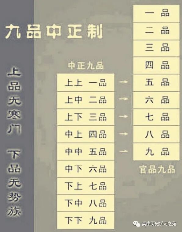 评价:将选官权收中央,加强了中央集权;后来门阀士族垄断用人权,只看家世,不看道德才能
