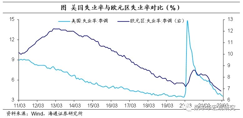 不过,从绝对水平来看,欧元区无论是失业率还是失业人数都远高于美国。