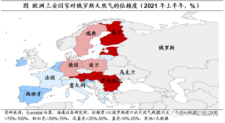 进一步来看,欧盟中保加利亚、斯洛伐克、匈牙利和芬兰对俄罗斯原油依赖度超过75 %,德国依赖度也超过25%;欧盟中保加利亚、捷克以及爱沙尼亚等十个成员国对俄罗斯天然气依赖度超过75%,德国、波兰以及瑞典等也超过50%。