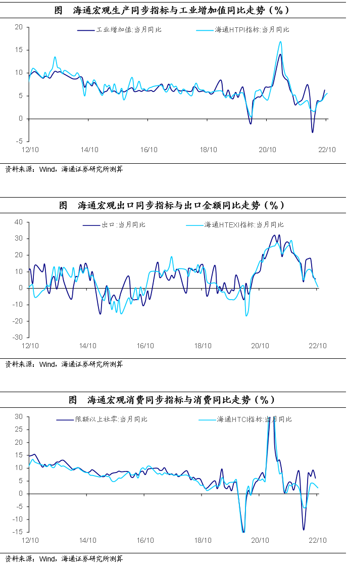 海通宏观高频同步指标:生产改善,出口消费走弱。截至10月26日,10月生产同步指标(HTPI)为5.58%,9月值为5.01%;10月出口同步指标(HTEXI)为0.94%,9月值为4.17%;10月消费同步指标(HTCI)为2.35%,9月值为3.35%。