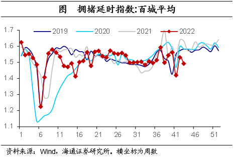 交通:城市内客运较前一周受阻,拥堵延时指数、地铁客运指数均较前一周回落。城市间客运继续回落,全国迁徙指数继续走低,一线城市间交通均走弱,国内航班取消率仍在回升。货运小幅回落,货运流量指数和运价均回落,不过高速关停服务区数量较前一周略有减少。