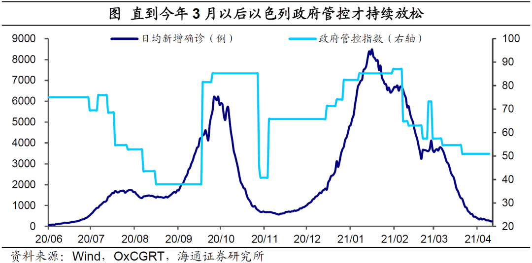 今年3月份全球疫情出现明显反弹。在这一轮中,变异病毒的广泛传播成为主要元凶。但也有小部分国家,比如以色列、英国的疫情形势在“逆势”改善。作为进度最为领先的国家,当地的疫苗接种在一定程度上发挥了防控疫情的作用。