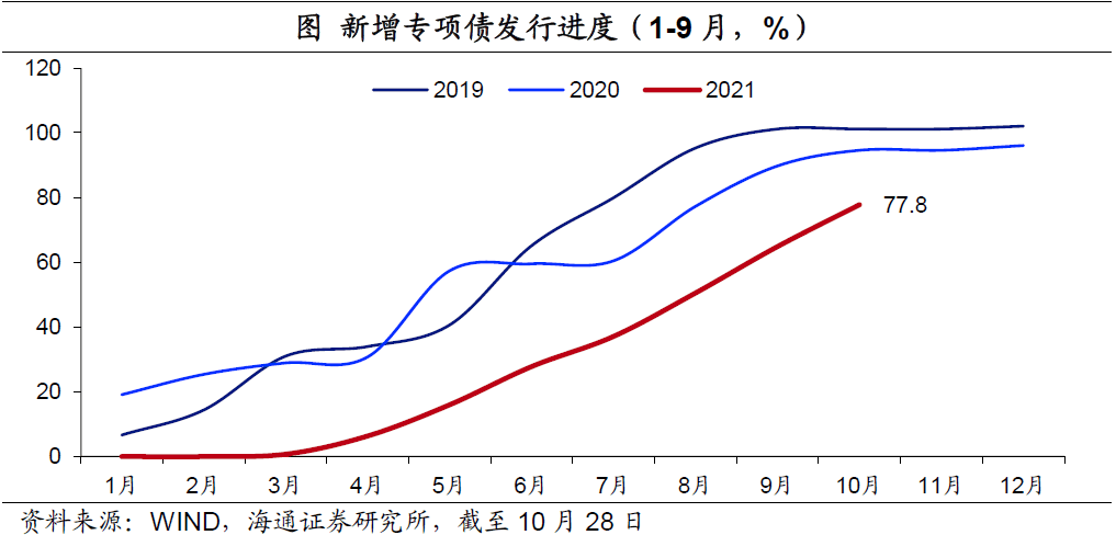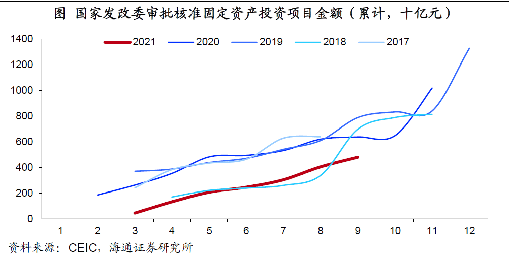 今年以来,我国基建投资增速较低,截至9月,基建累计投资增速仅为1.5%。当月同比增速自5月便进入负值区间。其中,交运仓储行业和水利环境行业是主要拖累。基建投资较低,主要与政策转向调结构、淡化总量有关,今年以来,预算内资金投资基建明显下降,专项债发行偏慢,自筹部分的其他项目资金也有所回落。