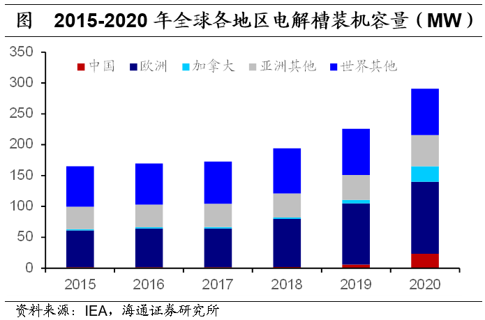而且我国制备氢气的资源很丰富,弃电资源能作为氢能供给的重要来源。中国是全球第一大可再生能源发电国,截至2020年底,中国可再生能源发电装机总规模达9.3亿千瓦,占全球总量的80%以上。我国每年在风电、光伏、水电等可再生能源上的弃电约1000亿千瓦时,可用于电解水制氢约200万吨,可再生能源有望成为中国绿氢供给的主要来源。