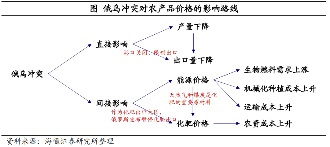 因而在气候因素影响下,多种粮食普遍面临供给下调、库存偏低,去年四季度农产品价格就重新开始了上行趋势。而随着俄乌冲突的发生,可以说直接“引爆了”全球农产品的供给问题。