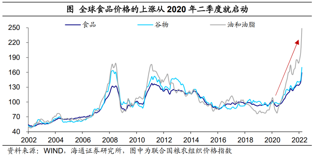 但今年以来,美欧的货币政策都发生转向,尤其是美国的货币收紧速度加快,但粮价上行势头反而不减。所以货币因素并不能解释今年以来的上涨。