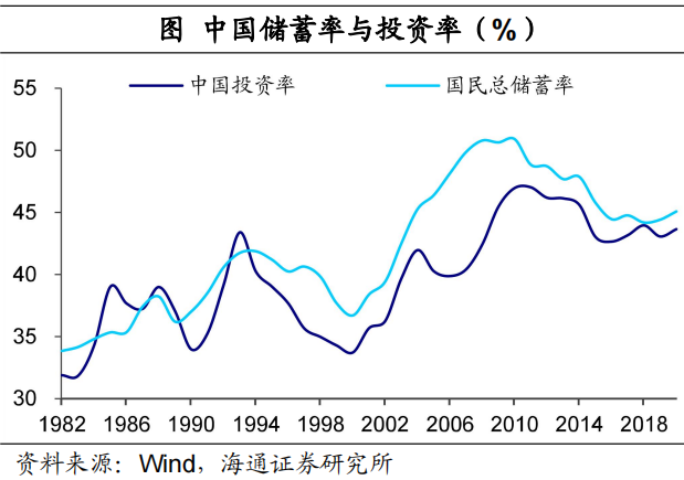 而对于基础设施建设,包括地产投资等,只要资金大量投入,都能够在短期拉动经济增速。这也就是我国资本回报率与名义经济增速分化的主因,也即尽管投资回报率不高,但依然有大量资金用于投资,带动我国投资率长期处在高位,支撑我国经济高增长。2009年以后我国投资率进一步上行至45%,而同期美日韩的投资率都在30%左右甚至更低。而且我国的高投资率还有高储蓄水平的支撑。投资来源于社会中的储蓄。由于人口结构、储蓄倾向等多种因素的影响,上世纪80年代以来我国的储蓄率持续上升,当前在全世界都处于偏高的水平,能够支撑资本形成的迅速增加。而随着投资率的走高,资本的边际产出递减,进而压低了整体资本回报率。其实这也解释了,为什么我国当前并不适用利率黄金法则。法则的重要前提是“最大化消费”,大部分发达经济体可以接近充分消费水平,但我国过高的储蓄率明显会对消费形成挤压,使得均衡利率远低于经济增长水平。![]()