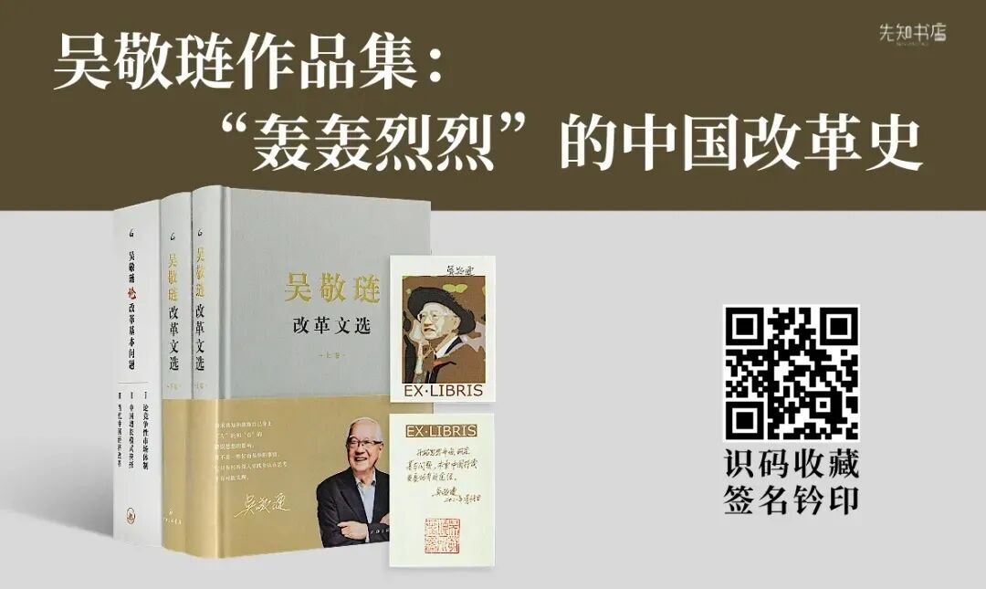 今天的中国从改革中走来,但如今改革结构矛盾之复杂、各阶层利益冲突之尖锐、困难积累之厚重、主观意识及客观环境危情要素之复杂,大大超过改革开放以来任何时期,这就更需要真实的声音。当下中国知识界有水平的人不多,身居高位、敢讲真话的人更少,吴老就是很重要的一位。他是一位保持着独立思考,坚持为市场辩护、为底层发声的经济学巨匠,他仍然在苦苦思索着中国改革发展之命运、中国社会发展演进之趋势。为此,先知书店诚挚推荐“吴敬琏作品集”,包括《吴敬琏改革文选》和《吴敬琏论改革基本问题》,前者包含吴敬琏亲笔签名,后者有作者的盖章书签。吴老曾说:“我们当前所需要解决的问题,其实都可以从我们过去四十年所遇到的问题、所出现的各种偏差找到根源,所以进一步全面深化改革取决于我们对过去经验和教训的认识。”吴老的思想中,充盈着中国计划经济时代的经验教训和西方市场经济学的经典规律,及适宜于中国的有效经验。在真正能够比照中西方市场之特征及规律之后,他明白哪些西方的经验和规律,真正适合中国。吴老现已92岁高龄,先知书店有幸获得他的亲笔签名藏书票+钤印,非常珍贵。识别下图二维码,即可抢先收藏(还可一并选购资老与陈乐民伉俪的作品集)。来源 | 本文是吴敬琏先生2011年在资老自选集首发式上的发言,原题为《重归文明,续写文明》。