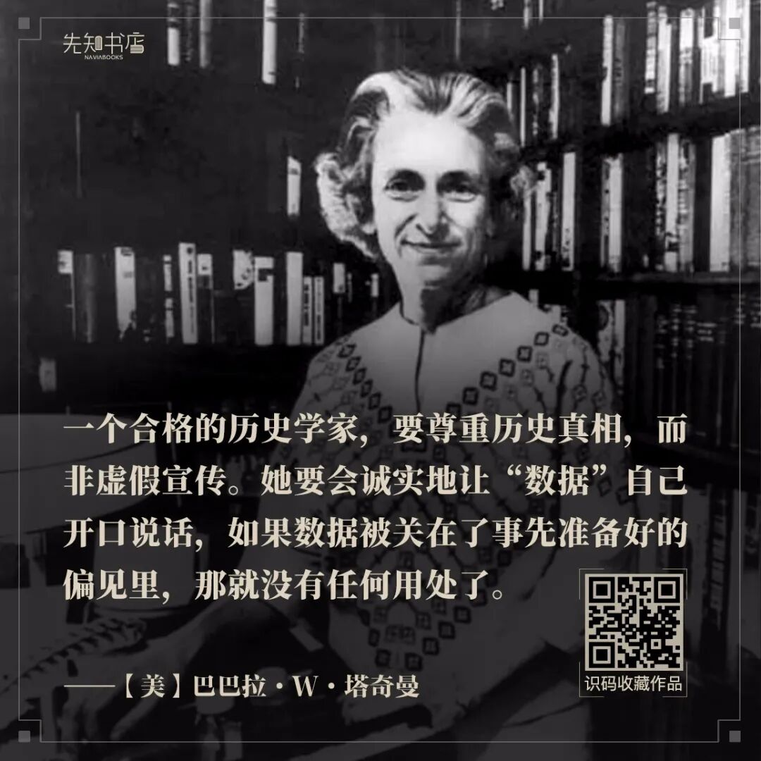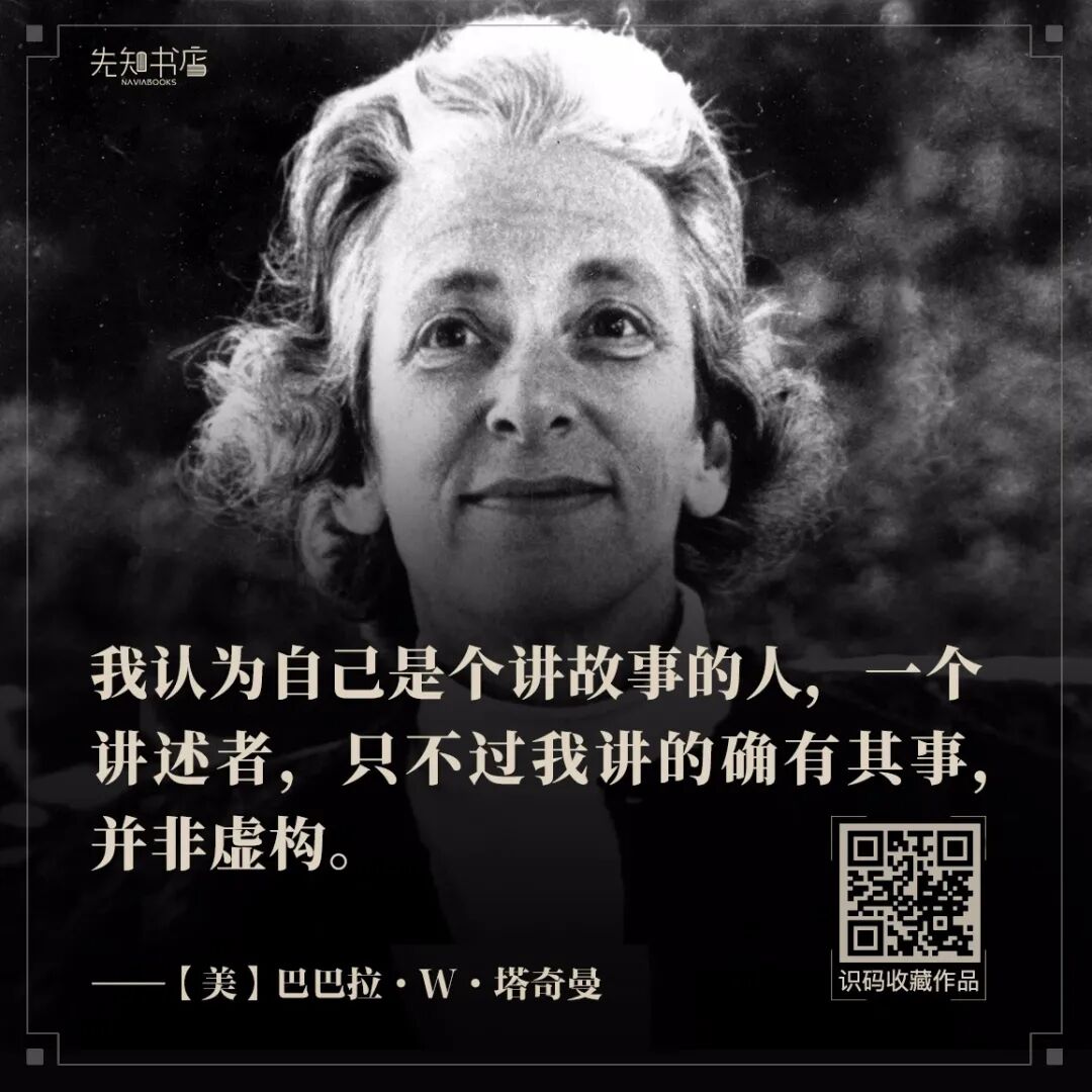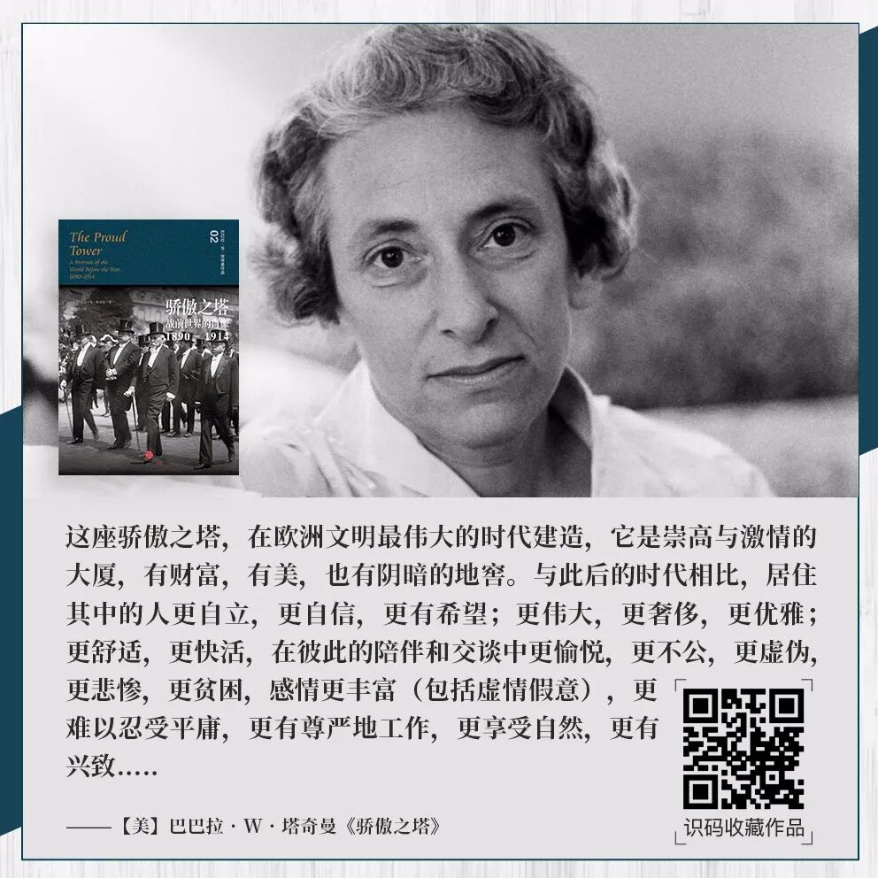 “1910年5月的一个上午,英国国王爱德华七世出殡,骑着马在队伍中前进的有九个帝王,多么宏伟的一个场面!穿着丧服,肃穆伫候的人群,都不禁惊叹不已。这些君主,服色斑斓,嫣红姹紫,宝蓝翠绿,三骑下排联辔出了重重宫门,在阳光照耀下,羽翎头盔,金丝衣镶,绯色绶带,嵌着珠宝的勋章闪闪发光……”写作和商业最相似的地方在于:一旦有人开创了一个成功的新品类,就会被无数聪明的人模仿。下面是三位著名作家代表作的开场白,像极了对《八月炮火》开场白的仿写:“1932年那个山穷水尽的夏天,华盛顿哥伦比亚特区活像一座深陷敌围的欧洲小国京城……”“公元1587年,在中国为明万历十五年,论干支则为丁亥,属猪。当日四海升平,全年并无大事可叙……”“无数黑骑在远处来回驰骋。远处长河之上,一轮浑圆的血色落日;孤城城中,狼烟正直直刺向昏黄的天空。天宝三载,元月十四日,巳正。长安,长安县,西市。春寒料峭,阳光灿然。此时的长安城上空万里无云,今日应该是个好天气。”以上这三部作品分别是曼彻斯特的《光荣与梦想》、黄仁宇的《万历十五年》、马伯庸的《长安十二时辰》。充满魔力与洞见的文字,在塔奇曼的作品中,可以随手拈来:“1914年的某种气氛,让感受到它的人为人类的命运颤抖。”“使之高于普通的繁芜琐碎,这是伟大的悲剧必需的元素。1914年的8月,有一种东西在逼近,不可逃避,无所不包,笼罩着每一个人。完美的计划和易犯错的人之间的可怕矛盾直让人颤栗……”“你无法从恶中分离出善,智慧、勇气、善良也和无赖、贪婪和愚蠢相伴;英勇无畏和坚忍不拔也和虚荣、残暴、腐败同生同灭。”“生活在20世纪的人类不值得羡慕。他们以前相信自己是神的造物。现在他们失去了骄傲,开始思索自己最近的斑斑劣迹和眼前的重重困境。他们再也不能如赞美诗诗人那样尊称自己为‘仅次于天使之人’。”塔奇曼在“非虚构文学”领域的开拓行为,甚至反过来影响到了虚构文学。被称为“鬼才”的马伯庸说,“塔奇曼就是非虚构写作的神仙。”电影《霸王别姬》和《活着》的编剧芦苇,曾多次表示,对他影响最大的,就是塔奇曼,没有之一。◎「厌恶人类同胞的作家,已接管了文学世界」:流量明星vs冷门经典做到以上四点,自然是卓越的历史作家,但距离天才,恐怕还差一条:把冷门写热、化腐朽为神奇。用今天的话说,就是任性到不需要蹭热点流量,而是凭实力自己制造流量。塔奇曼出身于商人世家,早年在剑桥学习历史和文学,二十多岁成为战地记者。婚后十多年,她一直在家相夫教子。44岁,很多人已经陷入失去梦想、日渐颓废的“中年危机”。可是对塔奇曼而言,写作的“青春”才刚刚开始。当这位中年主妇走出厨房,重新开始公共写作时,竟然一飞冲天、长盛不衰:凭借《八月炮火》和《史迪威与美国在中国的经验》两度斩获普利策奖后,塔奇曼受邀担任多所大学的荣誉教授,讲座场场爆满。人们纷纷翘首以待:塔奇曼还会继续讲故事吗?下一次更新的作品,会是什么话题呢?一个作家通常会以三种方式重回公众视野:畅销书作家喜欢追逐时代热点,恨不得每时每刻都出现在公众眼前;合格的专家通常在自己的象牙塔里“深耕细作”,为大众提供专业咨询;优秀的学者更喜欢宏大叙事、无所不谈,留下“通史”类的鸿篇巨著……塔奇曼所处的时代,“厌恶人类同胞的作家接管了文学世界”——无论舞台上的戏剧,还是流行的各种作品,都在拼命地追赶潮流,没有人会关心时代的核心命题——接下来会发生什么。但这些都不是塔奇曼,她是充满关怀的人文学者,更是敢于挑战“小流量”的天才作家。功成名就之后的她,以一种“任性、冒险”的姿态,冲入最清冷的历史领域,掀开一张张积满灰尘的幕布,点活了舞台上的人物:从中世纪大瘟疫到美国建国时的世界政局,从木马屠城到越南战争,从摩西圣约到贝尔福宣言……塔奇曼的八部作品,在中国影响最大的,无疑是《史迪威与美国在中国的经验,1911-1945》,但最能代表其写作水准以及他自己最喜欢的作品,则是《骄傲之塔》——很少有历史作家关注的冷门历史时段,这从该书的副标题“战前世界的肖像:1890--1914”可见一斑。塔奇曼不仅成功挑战冷门话题,而且将这些话题写成了人们竞相购买、引用的经典。看似任性的背后,其实源于她敏锐的历史洞察力,才能在历史的荒漠中掘得宝藏。塔奇曼说:“吸引读者的历史,让他们和我一样对写作主题欲罢不能。但前提是,这段故事必须要先吸引我自己,以至于有一种分享的使命感。和谁分享呢?——当然是读者,我一直将之装在心里的人。”(塔奇曼《历史的技艺》)▍当世界坠入平庸与危险时,需要一种力量拉住它:塔奇曼作品使用指南时至今日,塔奇曼开创的“基于文献的史诗写作”,对我们究竟意味着什么?至暗时刻的肯尼迪将塔奇曼作品置于案头,作为决策的依据;美国总统将它作为国礼,塔奇曼的书是大国外交的信使;曼彻斯特、黄仁宇、马伯庸等作家将塔奇曼的书作为“模仿”对象……对于大众,阅读塔奇曼作品,在体验阅读之美的同时,亦完成了一场智慧之旅。![]()