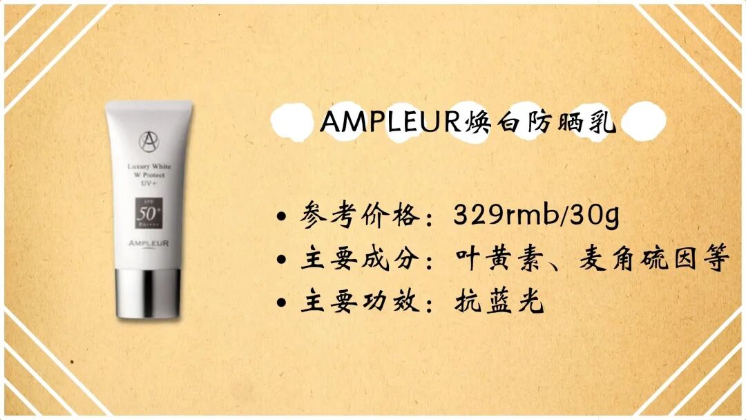 Ampleur是一位日本皮肤医生创建的品牌,国内虽然偏小众,但在日本本土可是有着与国宝品牌pola同一生产线的地位哦~这款小白伞防晒乳,是市面上少有的把防晒和抗蓝光一手拿捏的产品。不仅能安排好SPF50+、PA++++的防晒力,妥妥满足通勤路上的紫外线防护需求;也有着“蓝光阻隔剂”叶黄素的助力,能有效防护手机及电脑等屏幕的蓝光危害。并且,作为一款精华防晒,它还添加了生育酚、麦角硫因等活性成分,进一步缓和肌肤老化危机,简直是都市丽人的必备单品嘛!