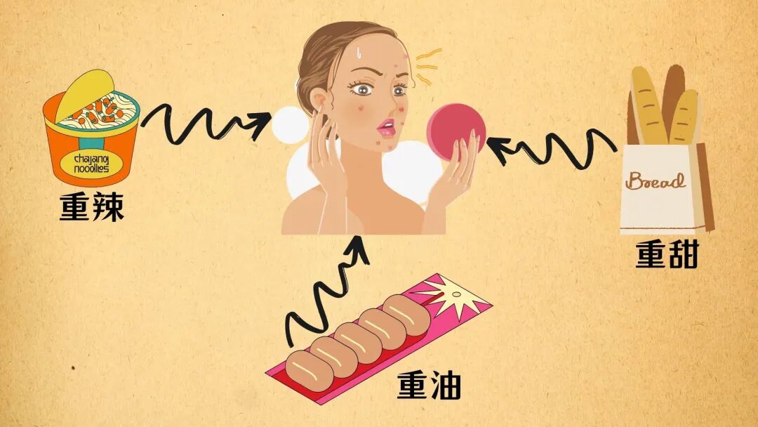 重辣食品中的辣椒素则负责添油加醋,引来大量炎性因子,让皮肤“着火”,红肿痘应运而生。于是,在重油重辣重甜的重重包围圈中,痘痘大军成功席卷了我的脸子。