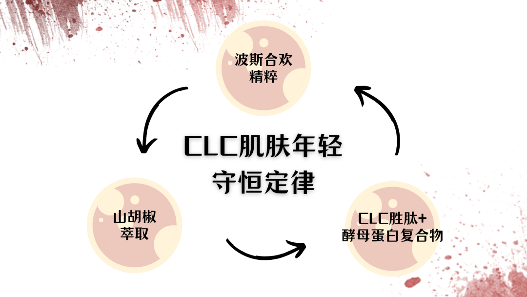 首发的是波斯合欢精粹,堪称细胞能量加油站,稳、准、狠地激发细胞活力,一边安排肌肤修护工作,一边筑起皮肤保护墙,抵御紫外线强烈导致的行为性老化。接应的是山胡椒萃取,拨正细胞节律的时钟,不仅能提亮肤色,还能从内而外嘭弹肌肤,淡化纹路。压轴的是CLC胜肽和酵母蛋白复合物,能为细胞端粒提供保护罩,减缓细胞老化,从而紧实肌肤,妥妥拿捏住脸部纹路。