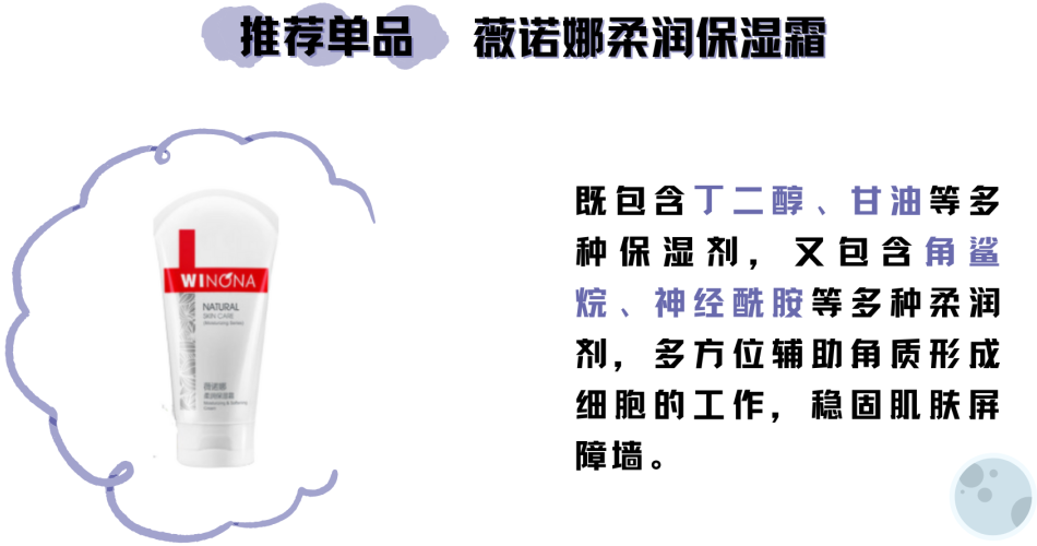 这时候,我们可以通过外援来辅助角质细胞的工作。它主要负责的是生产NMF和细胞间脂质,那我们就选择同时包含保湿剂(可模仿NMF的属性)和柔润剂(可模仿细胞间脂质的属性)的护肤品,借助外力来加固皮肤屏障。