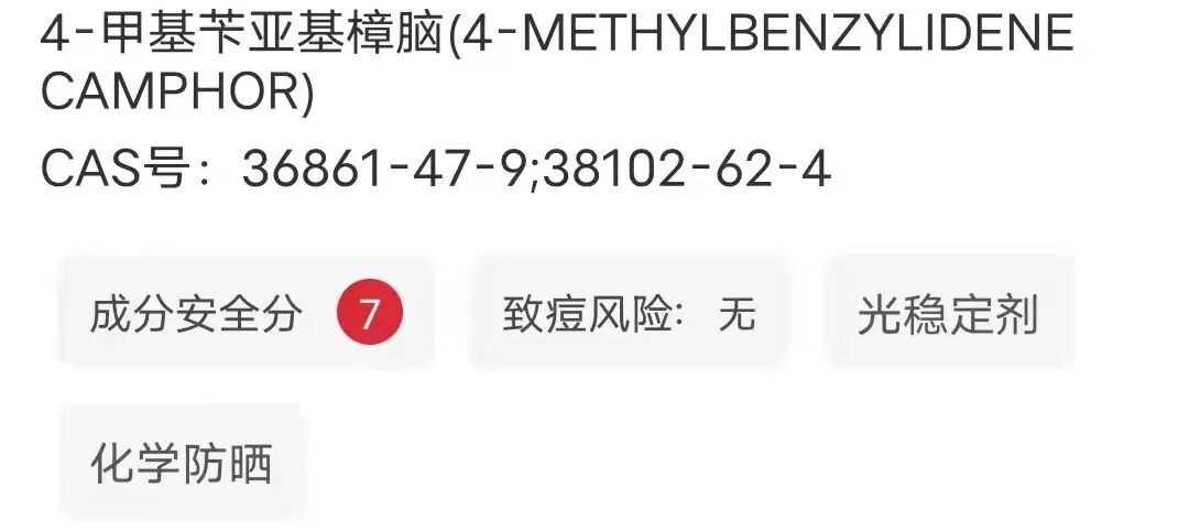 4-甲基苄亚基樟脑也是化学防晒剂的一种,主要防御紫外线UVB,在部分国家的行业规范中被严格限制:美国FDA不允许使用这种防晒剂,欧盟认为其对甲状腺有毒性,会干扰人体激素。所以,酱酱也建议大家不要使用这种防晒剂。