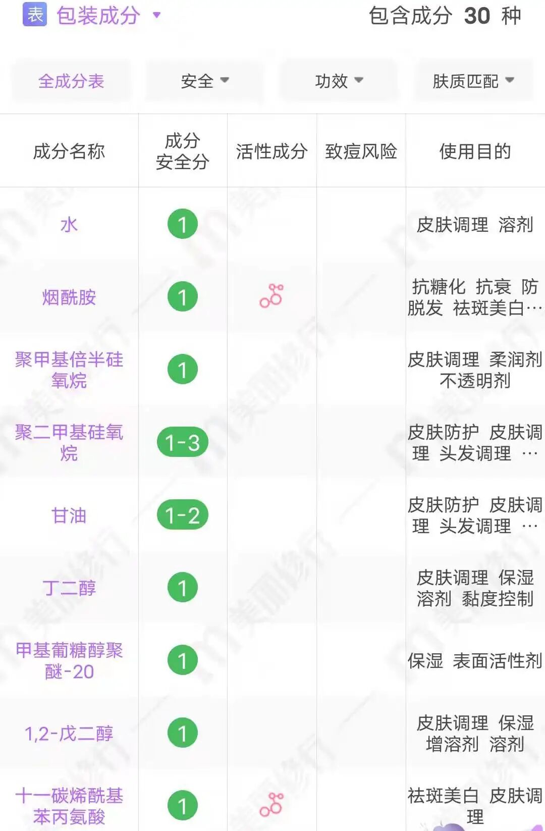 通过查阅成分表,你可以了解这款产品的真实功效,避开商家宣传的文字游戏,和“虚假宣传”say bye bye~