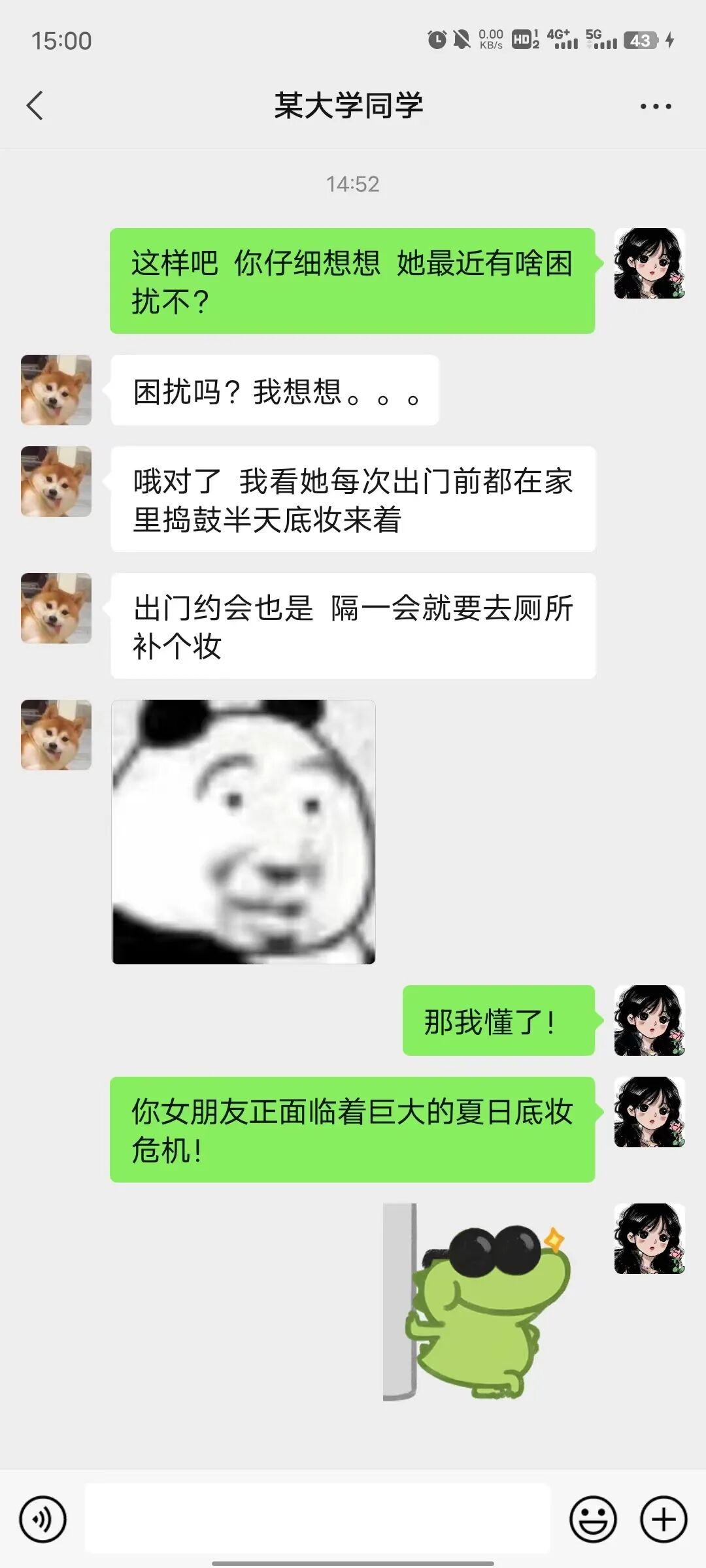 身为一枚女性美妆博主,酱酱对女孩子喜欢什么可是拿捏得死死的,立马开始和他沟通起女友最近困扰的事。