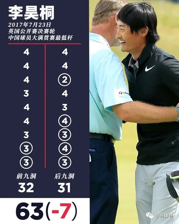 2017年英国公开赛,李昊桐曾打出了63杆的中国球手大满贯单轮最低杆数。不过那毕竟是一场苏格兰林克斯球场举行的大满贯赛事,普通美巡赛的舞台上,最低杆数本来也是由他保持——2019年汇丰冠军赛首轮的64杆——直到今年年初的夏威夷,将这一纪录改写。