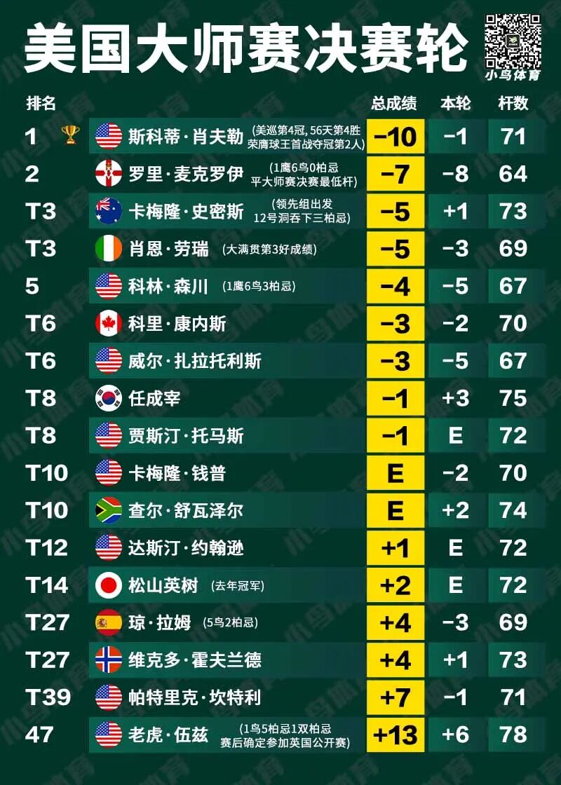 美国大师赛四轮比赛收官,预示着小鸟体育与PING高尔夫联合举行的竞猜活动,也即将揭晓结果。