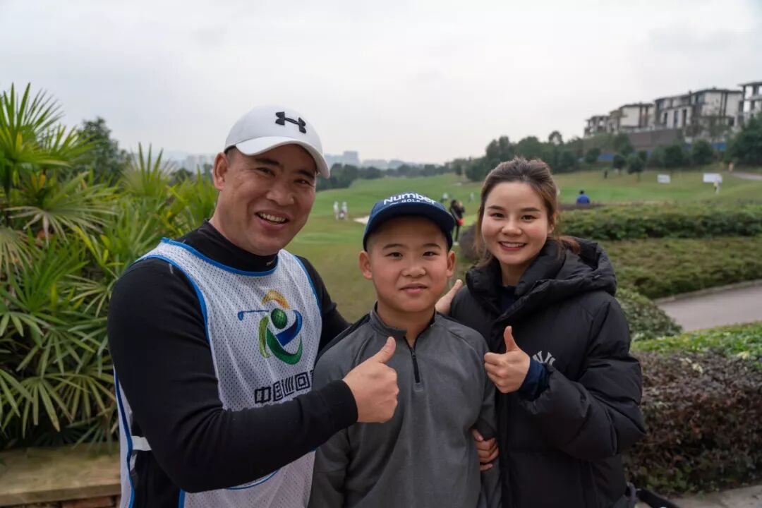 参加中巡赛的周彦含与陪伴在身边的父母