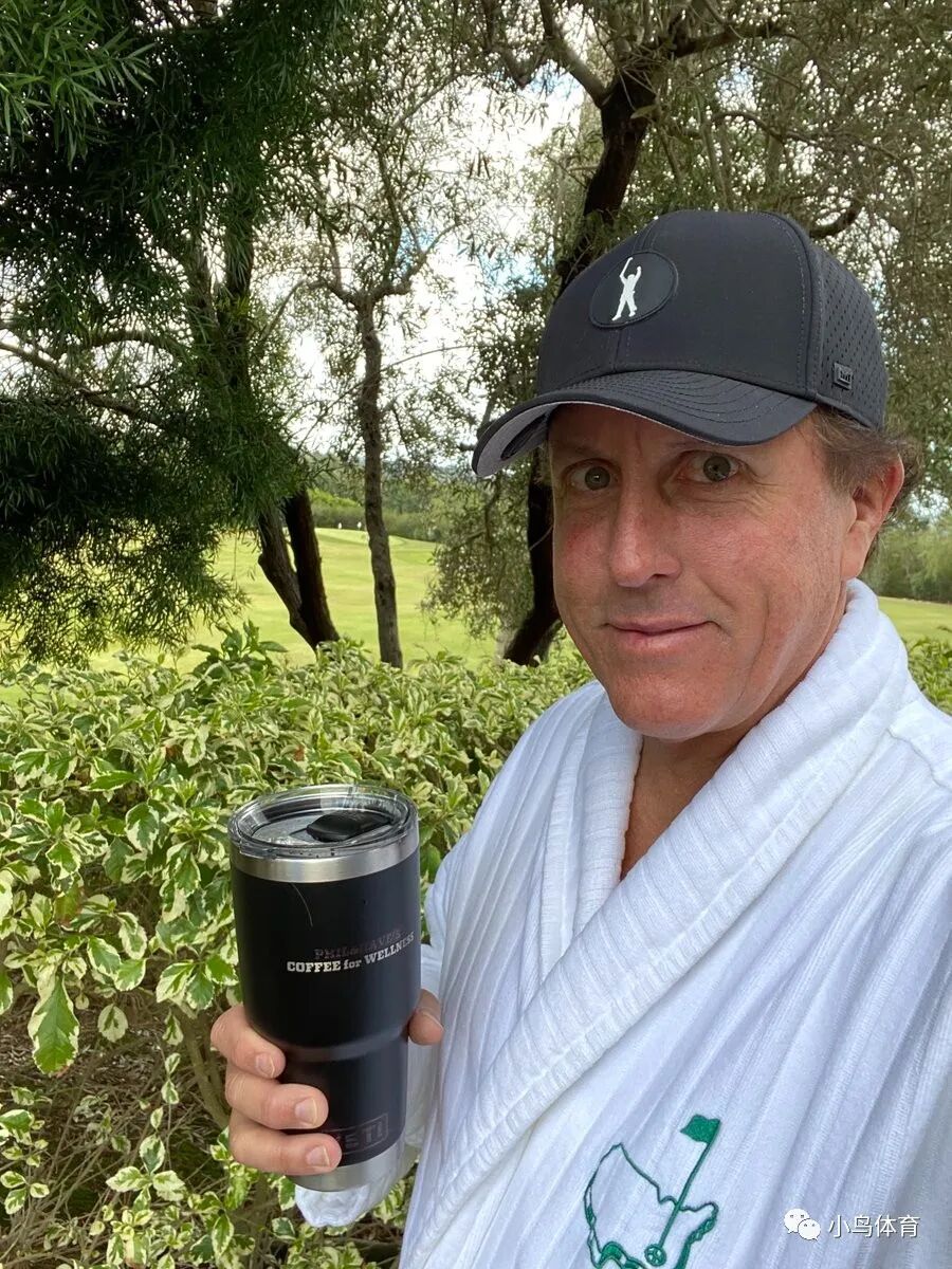上周美巡赛“复工之战”嘉信挑战赛,更是能看到老米一边喝养生咖啡一边打球: