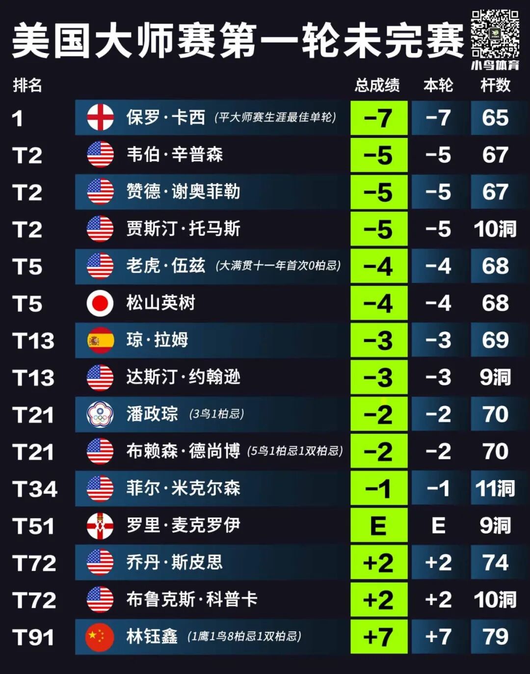 而在这一天,他不仅射下了自己在美国大师赛上的第一只小鸟,还交出了红字的70杆,以并列第21名佳绩开启了奥古斯塔追梦之旅的“开门红”。