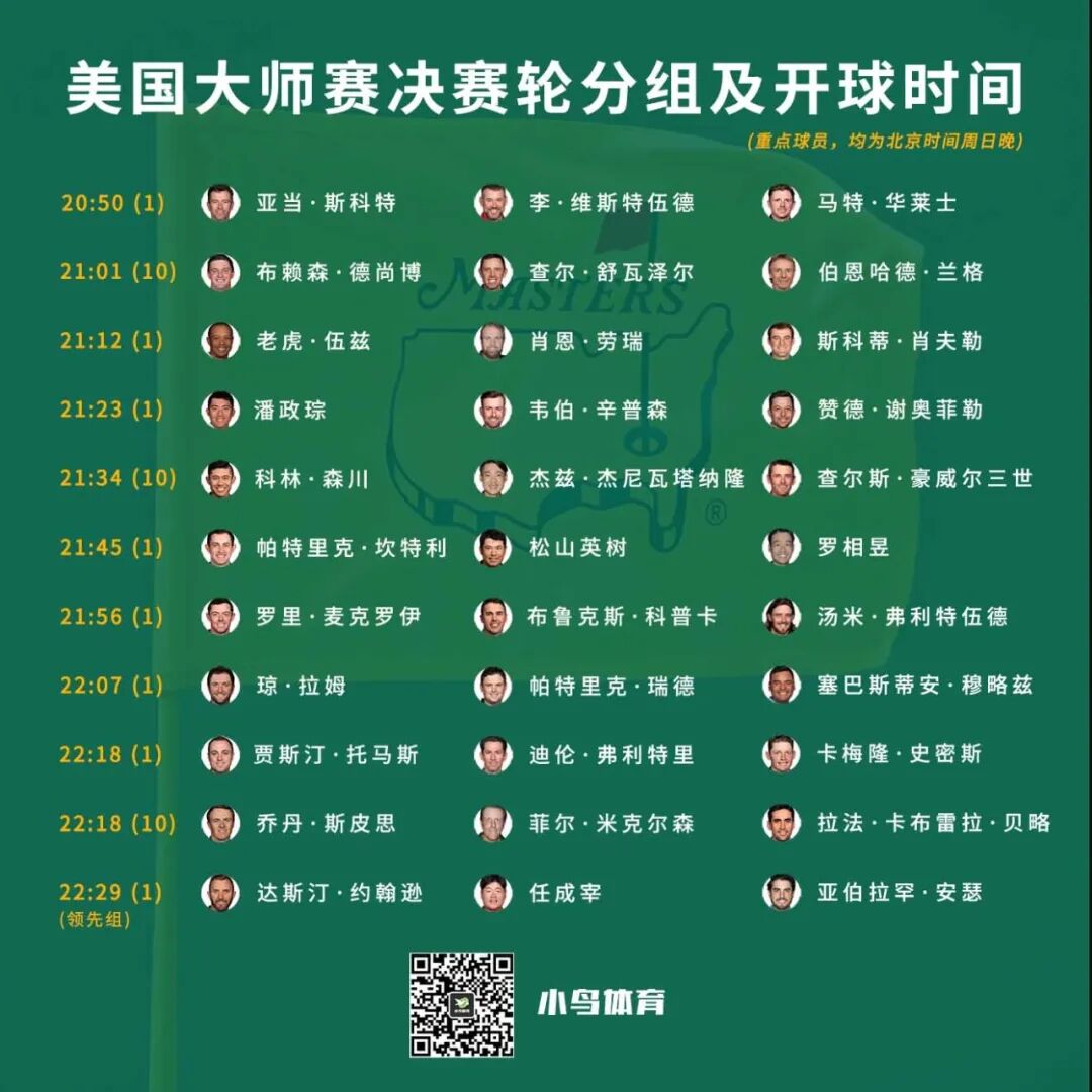 美国大师赛移动日,他交出了100%的上球道率,最终砍下1只老鹰和5只小鸟、没有柏忌的完美65杆,从而以4杆优势遥遥领先进入决赛轮!人生首件绿夹克,似乎已是近在咫尺。